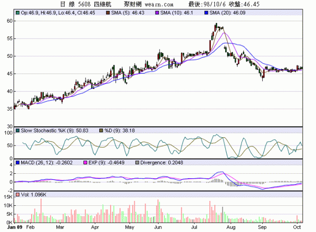 還有個人認為「昇兄」真的有點倒楣..............他只是提出個人見解,散裝貨輪近期消息面也確實屬實,卻被網友質疑甚至暗示某種程度,真的會讓人傷心。感覺「好心被雷搥」..........也希望「昇兄」不要介意。因為任何人的買進賣出,都是個人的行為。不過對於今日10/06四維航的成交結果,我倒是真的有點遺憾。因為10/1~10/5三日的量縮,總認為應持續抱持,並研判10/6量會起來,甚至會開出紅盤。誰知量還是無法往上衝,整個成交量在航運股表現算是不好的。對「我」個人來說,股票是不怕跌的,因為當有跌的動作,比較知道下一步驟是什麼。最怕的是盤整或是墊高,這個真的很痛苦,感覺進也不是退也不是。我以今年日線來看線型:今年一月逐步升高,感覺整體屬於墊高行為。並在今年7月中旬衝出,整個型態屬於尖頭反轉。現在看來又好像在休息墊高................不過他的階段性下殺也被盤整給收掉,短期後勢「個人研判」應該也沒有空方的市場................這算是可喜可賀嗎??以上為個人研判,供各位參考~~
