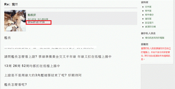 Katong wrote:我小學畢業幾十年了,...(恕刪) 我小時後是學「利害」...「利害」在許多古文中有出現,確實有「厲害」的意思,國語辭典上也有,不能說是錯別字,不過現在的小學生都是教「厲害」沒錯。用「厲害」是比較好,「厲害」比「利害」的強度要來的高,「利害」也有「利益損害」、「利害關系」等等的意思,噗..常教姪子姪女功課,我認真了..Orz..回主題..大大在 9/2 如果是短線趨勢向下就完全命中,現在是不是逃命波還不能斷言喔,如果沒破前波低點 9014,又回升到 9513 的話,甚至在這區間盤,都只能算技術修正。會走逃命波或是技術修正我不知道..
