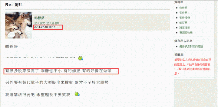 黑田如水 wrote:不過趨勢是可以畫出來的不然你以為我以前出手10次8次績效全國冠軍是運氣來的嗎一次猜對可能是運氣但是8成都猜對還績效勇冠全國就是實力了 看來,巴菲特太早找好接班人了,我想巴菲特也比不上您.有這樣卓越的實力,不知道方不方便貼一張圖出來,讓大家看看您的資產規模嗎?