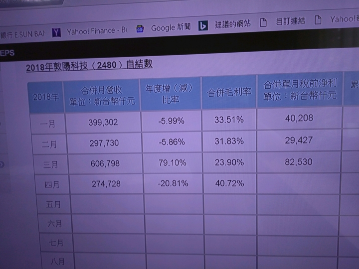 找出敦陽科第一季營收暴增的原因了。看來一般散戶還是得等到比較有管道的券商公布資料才知道怎麼一回事。當然自己打去公司問也可以,但有時候公司不一定會跟你講真正原因,只會攏統的敷衍,或是一句商業機密什麼的給你軟釘子。各位怎麼看呢? 我自己目前還是持有,不過如果最近有再大漲一波,或是緩漲到42以上,應該就會先賣了。https://imgur.com/a/61ICh