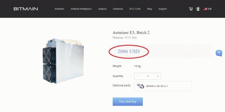 Bitmain E3 USD800 + PSU USD150 成本只有電腦的1/3~1/2