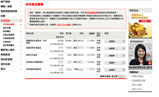 單一國家的風險本來就比較高,不管是哪一支基金,投資人除了慎選之外,心臟也要夠大顆...我不敢推薦,只能客觀地以自己在HSBC Direct的投資經驗來分享【匯豐環球投資基金 - 巴西股票】、【富達印尼基金】這兩支:1.投資標的目前績效2.不定期不定額波段進場