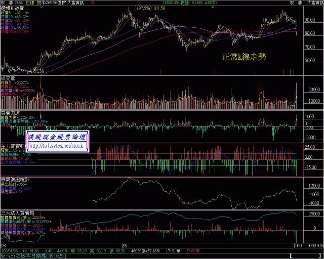 首先跟大家道歉一下 , 其實這張圖 , 不是真正的走勢 .我耍了點小心機 , 把 k 線給翻轉過來 , 讓漲的變跌的 , 讓跌的變漲了 .下面那張才是真正的走勢圖 ..看到了那張圖之後 , 你的看法又是如何呢 ?跟原先的想法相同嗎 ?其實我的用意在 , 有些人只會作多 , 而看不懂空頭走勢 , 所以如果把k線圖顛倒過來 , 做空也好像做多一般簡單 , 也看的懂了 ..