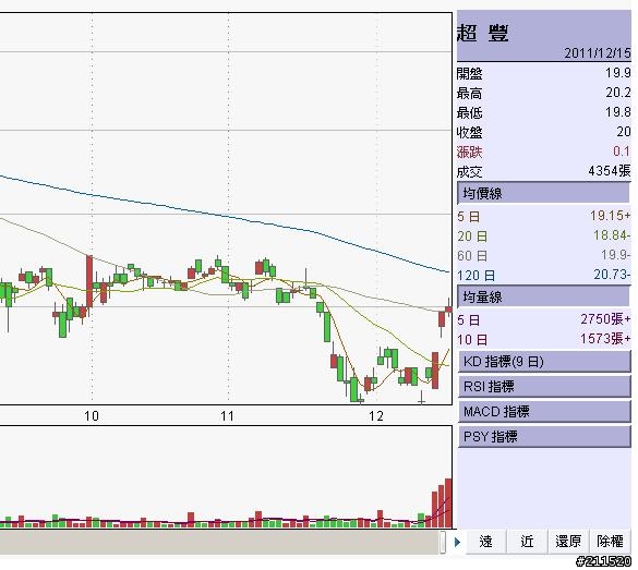 因為以前有一段時間喜歡買2441超豐所以一直有再觀察!!!這幾天看到2441超豐~一直有大單在買!!就連今天大盤一直殺~他還是維持小紅!!果然下午消息出來了!!!《半導體》力成決議公開收購超豐 (時報資訊 2011/12/15 14:14)目前還不知道收購價多少!!