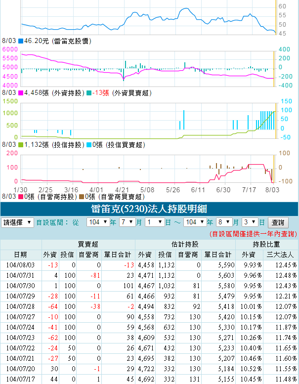 worship wrote:像這樣嗎?個股法人...(恕刪) W大發言, 害我趕快打開軟體看有沒有看錯.大致上7月中下旬三大法人"總"持股上升是沒錯的, 但不代表股價方向, 只是拿出一個多方訊號, 幫苦主打氣