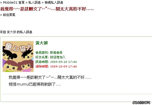 科科科一號機 wrote:哇靠這麼快就挖出來了...(恕刪) joperci wrote:之前看過不少人批評他...(恕刪) 靠....01真的是一堆神人,我看如果各位大大要認真起來的話,就算無名被鎖,也是有辦法駭客進去吧...只是各位大大佛心來的,想說還是不要放大絕好了.另外, 我200%同意樓上大大說的,長相這檔事本來就不是她的錯,不過.....行為上, 或是心態上,總是做些讓"絕大部份"99.99%的人都看不下去的話,我想.....這就是個人的問題吧.