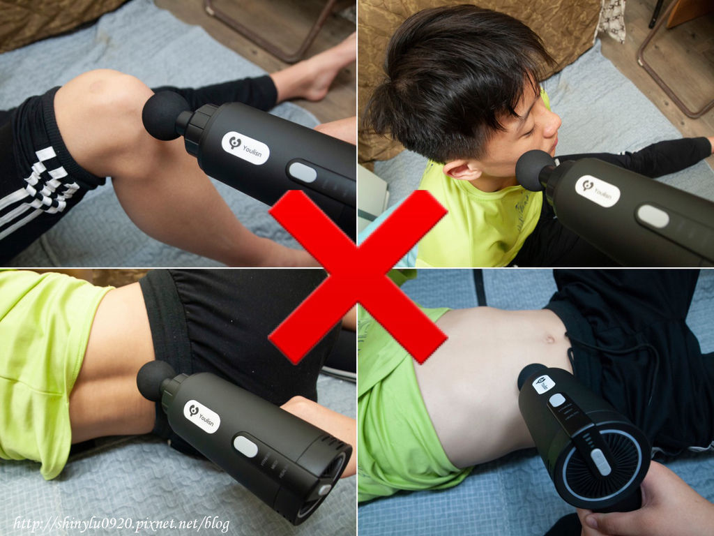 ↑ ↑ ↑ 提醒大家有傷口也要避免使用按摩槍哦 ! 另有「有洞」跟「堅硬」的地方不能使用哦 !