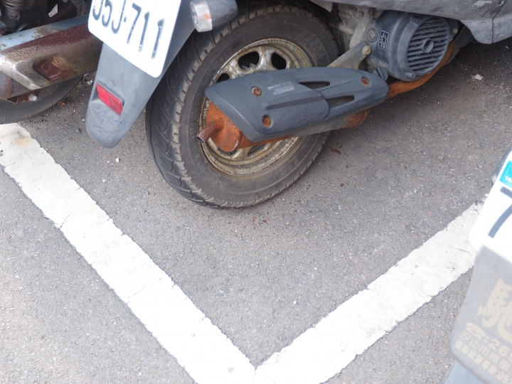 人行道上的報廢機車