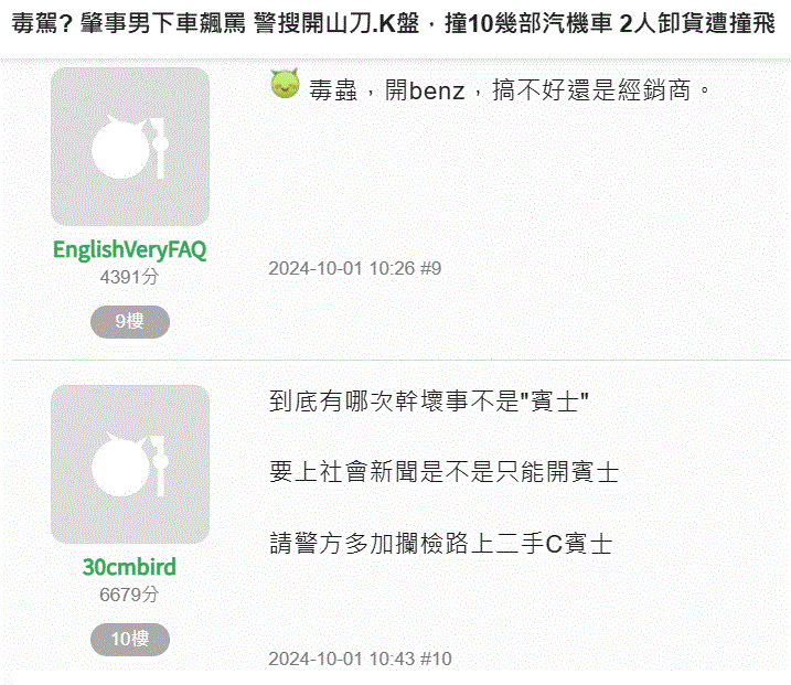 有些朋友可能還沒社會化,沒關係讓本魯告訴你們一個其他人都知道的事:雙B等歐系豪華品牌是被媒體特意放大檢視的,反之其他平價牌譬或日本豪牌則是被媒體包庇雙B保時捷法拉利犯案,媒體高機率把品牌報給你看反觀,如果是我豐田、日產、三菱、福特甚至Lexus Infiniti等高級日系車犯案,媒體高機率不報品牌長久下來難怪你們會被媒體帶風向(注意,我上面說的是高機率,完全不否認有少數反例)就以本案來說好了,看看這截圖就知道了,連方向盤logo都幫你馬賽克