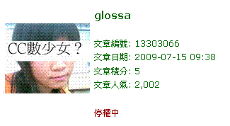 回給glossa的pm:pm1:如我之前所說,你該道歉的對象應該是yaingfox才對,請在yaingfox上線時,好好向yaingfox道歉吧回給glossa的pm:pm2:靜候yaingfox上線,然後好好向yaingfox道歉 ,站務區的道歉文麻煩多用點心在yaingfox大大吧!glossa wrote:一、使用多重帳號灌分不當提高人氣。二、使用多重帳號(yaingfox.)發文並自爆。三、因為一時情緒性發言造成諸多網友不滿。因為已經沒有所有帳號的使用權限,所以在此先向Y大道歉。也向被我情緒失當影響的網友道歉。