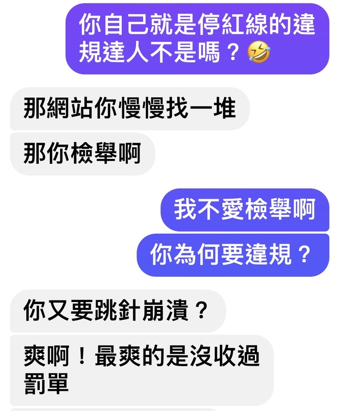 宙王 wrote:你的邏輯就來解說一下為何無效? 事故死亡率只有檢舉達人這一個變數?而且被檢舉的違規和實際發生的違規大概1千件,甚至1萬件才被檢舉一件吧!像我家對面的樓下,路邊有停車格,但道路【單向只有一線道】對面樓下全都是小吃店和安親班每天都一堆買小吃或接小孩的車輛【並排違停】這些自私,堵塞交通的駕駛不該檢舉嗎?但檢舉這些並排違停幾乎不會減少死傷
