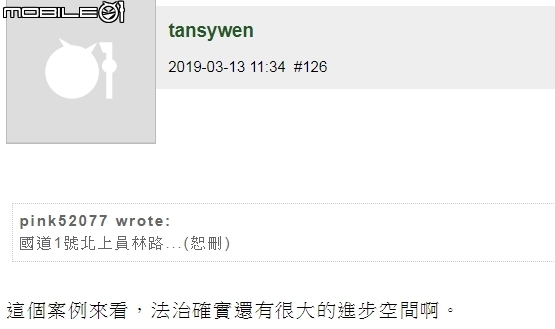 tansywen wrote:那這樣有哪位騎士因為騎上禁行機車道被起訴185條的?找一個出來就好。判決本來就是可受公評之事,不滿意就要去選立委喔?那陳水扁還在外面趴趴走,吳淑珍還不抓進去關,趙建銘還在當醫生,大法官自己解釋自己是法官每個月多拿9萬自肥,看來你相當滿意,一定覺得司法這麼公正,因為我沒看到你出來選立委啊~...(恕刪) 起訴的要件得先有警察移送如果檢察官認為沒有起訴的必要你當然看不到起訴你在另一串不是說我也沒說你不能評啊現在的立委那麼爛,等到你躺平了都不太可能達到你的要求所以才要你自己當立委去修法以這個案例來看,我的觀點與你相反所以我不用選立委啊