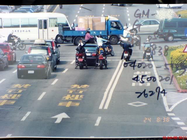一樣會有第1中的問題. 我原本停車我的車道上等紅燈. 後方後到的重機或普遍機車併停在我的旁邊. 光憑照片如何認定誰是先停誰是後來才違規併停的-->假設併停是違法的話