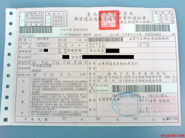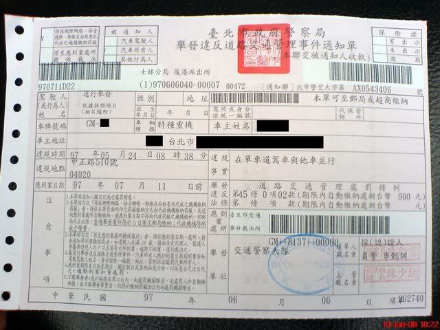 只有當初的罰單與照片,後來有改判不罰的公文,則未拍照