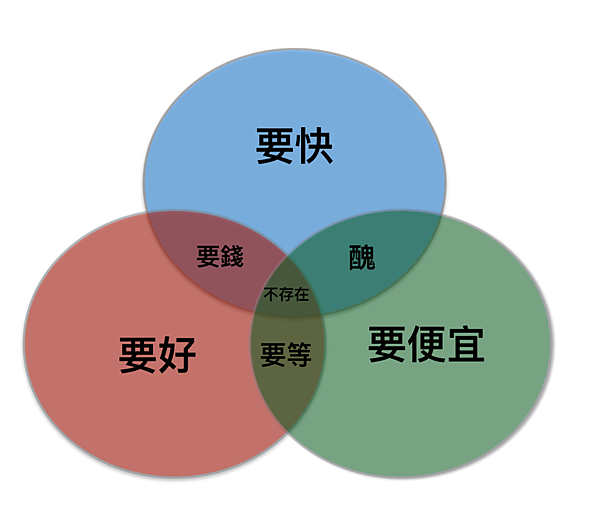 圖片來源「https://ken524426.pixnet.net/blog/post/78821287-要快-要好-要便宜?」