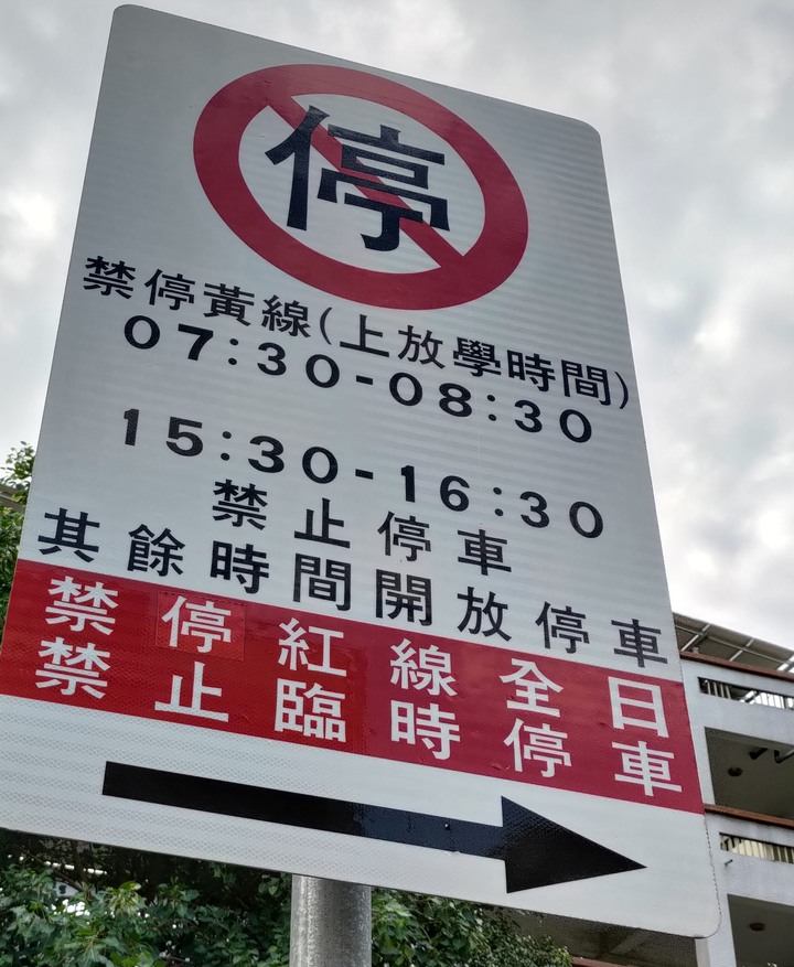 劃黃線為了接送小孩上下學,又禁止停車,黃線前後是計時收費停車格,因為只要顧二小時,而且一次一小時,可以省下一天360元的路邊停車費,一個腦洞大開的告示牌,被當成是終身免停車費的私人停車位,是剛好而已.要改成 其餘時間開放臨時停車,交通局是不可能去改吧.