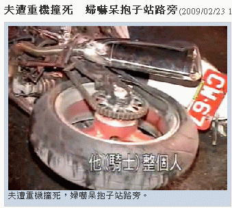 人都死了,這就是"喚不回的愛"看到他太太抱著小孩,心理真的不是滋味如果他太太說我們走斑馬線比較安全或是騎車的稍為多注意一下安全島是否有人穿越整個事情就不同了我曾經撞死一隻狗就是從安全島跳出來的後來我想如果是人我的一生不就毀了所以現在只要看到安全島(有樹的)我就會注意一下是否有人或是放慢車速上帝或是神明給你們機會你要怎麼選?http://www.nownews.com/2009/02/23/138-2412472.htm