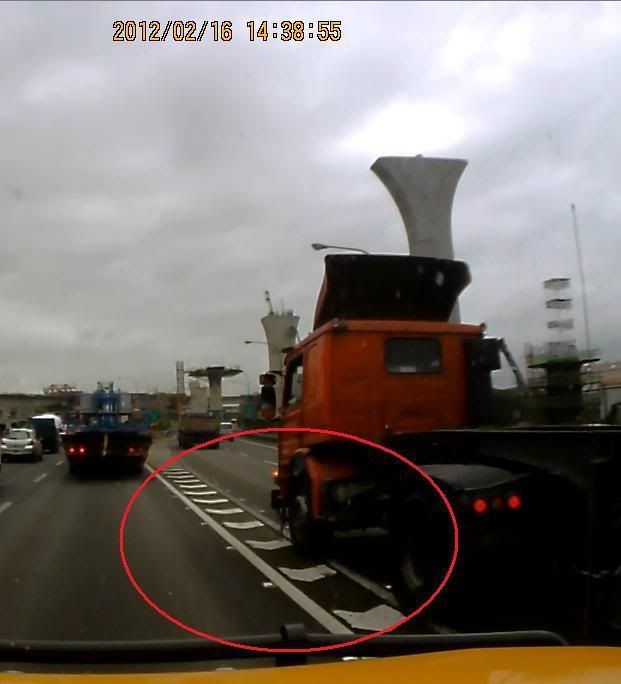 *他縱使違規(也不一定是故意違規,當時車多他有可能本來在最外線,而不好靠過來避開外環線)