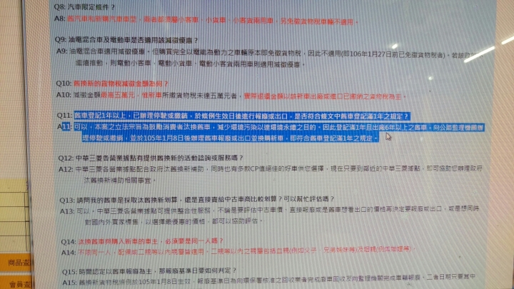 l3 wrote:本人有台車(在媽媽...(恕刪) 政府補助舊換新Q&A Q:舊車登記1年以上,已辦理停駛或繳銷,於條例生效日後進行報廢或出口,是否符合條文中舊車登記滿1年之規定?A:可以,本案之立法宗旨為鼓勵消費者汰換舊車,減少環境污染以達環境永續之目的。因此登記滿1年且出廠6年以上之舊車,向公路監理機關辦理停駛或繳銷,並於105年1月8日後辦理舊車報廢或出口並換購新車,即符合舊車登記滿1年之規定。