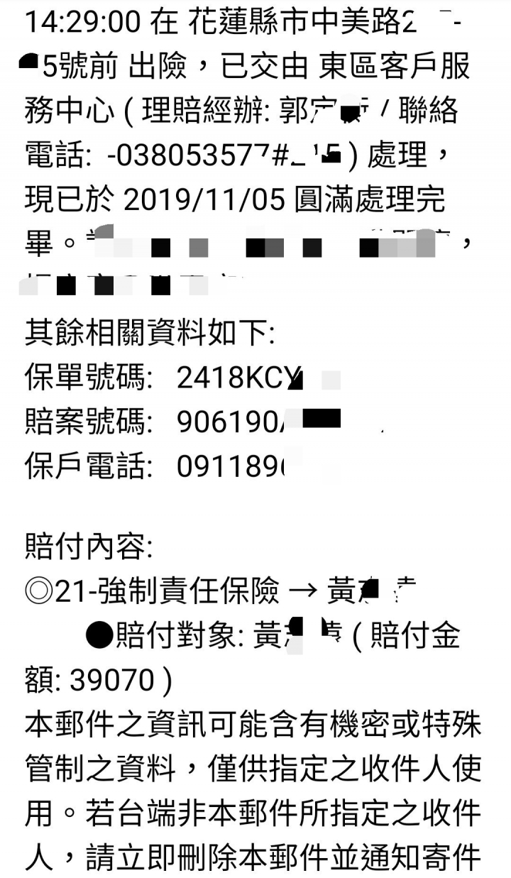 樓主為防範未然,聯繫對方和保險員紀錄需存證,免得和解過程對方說你不聞不問。