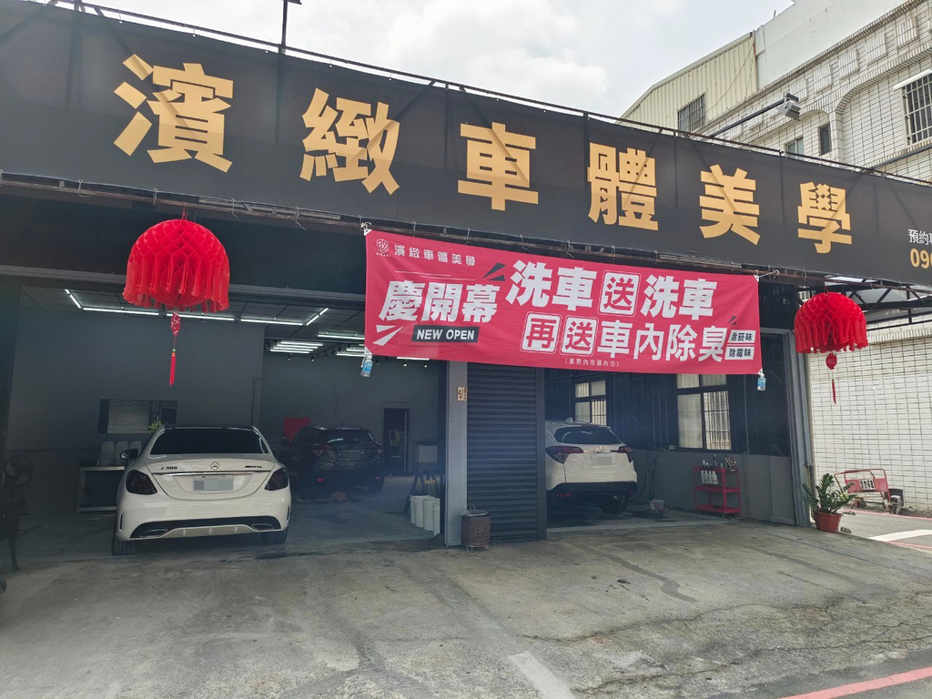 ▼這間濱緻車體美學開在東區富農街一段上,老闆之前是其他家汽車美容的店長,現在出來自己開業,那天還滿多老闆的熟客人來洗車的喔。布條上寫著洗車送車內除臭,然後洗車送洗車是指洗車五次再送一次,像我弟這種常跑工地的車子,這活動根本為他量身打造