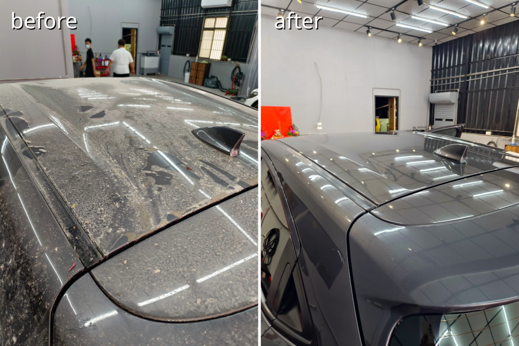 看到這個洗車效果,我立刻眼神暗示我弟:汽車鍍膜可以安排上了