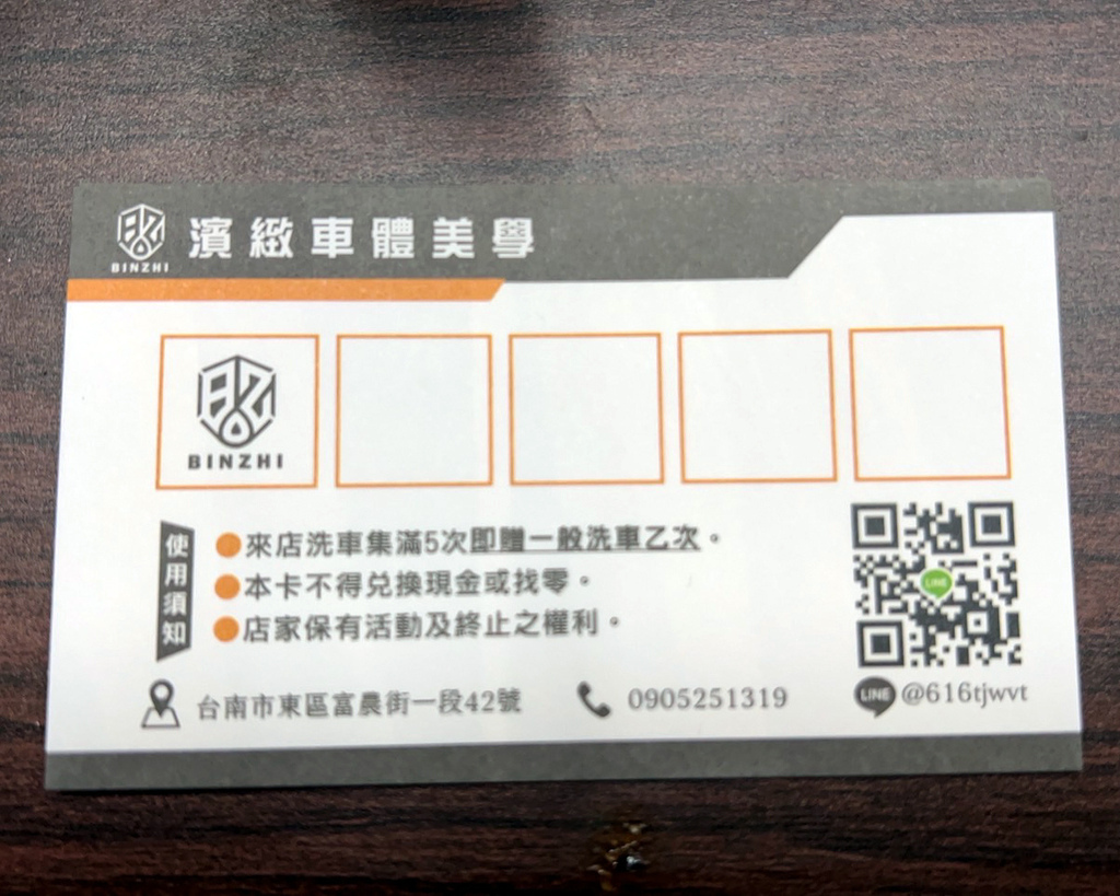▼洗完車老闆會給一張集點卡,上面已經印有一點