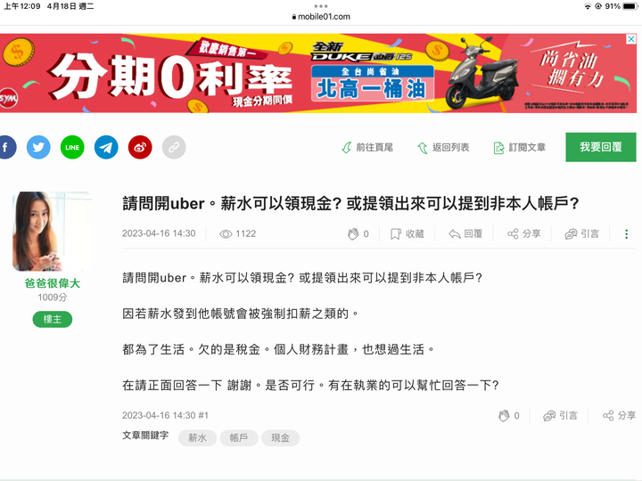 請問開uber。薪水可以領現金? 或提領出來可以提到非本人帳戶?