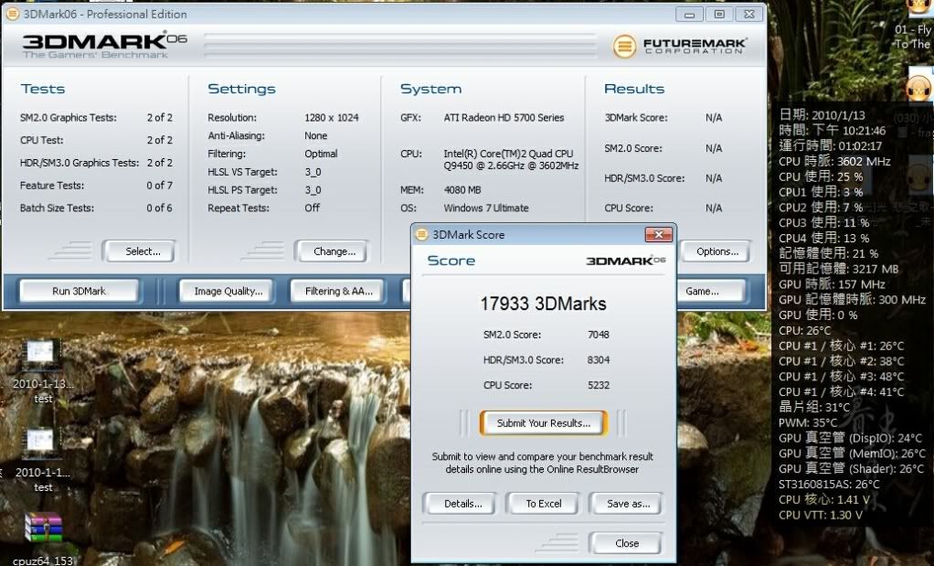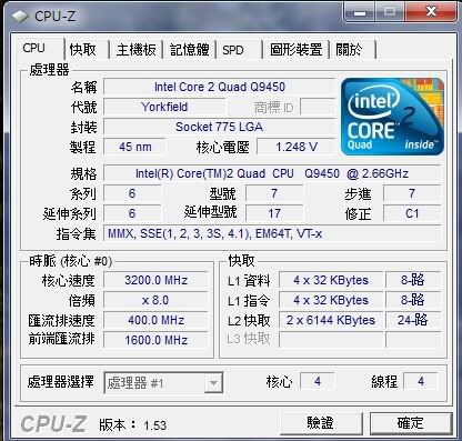 小弟是E8400換9450 C1 工程版(L2快取也是12M喔!!)W7的OS下轉檔 壓縮 解壓縮 真的有差E8400 OC 4.0G配ATI 5770 3D06預設14K多OC 4.5G 顯卡也拉到底時脈690也才快16K換了Q9450 直接OC 到3.6G 顯卡也OC拉到底快18K..5770潛力還沒到底嗎...