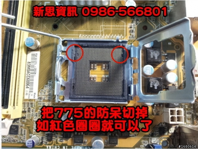 北極冰山 wrote:我最怕的是怕CPU裝...(恕刪) 你可以找771改775的、網路上很多教學文!很簡單!稍微爬文一下就可找到!轉貼拍賣網的照片!1.把775槽裡面的防呆切掉就行了2.我們會貼好轉接貼(送轉接貼)3.您收到CPU後安裝時對準方向