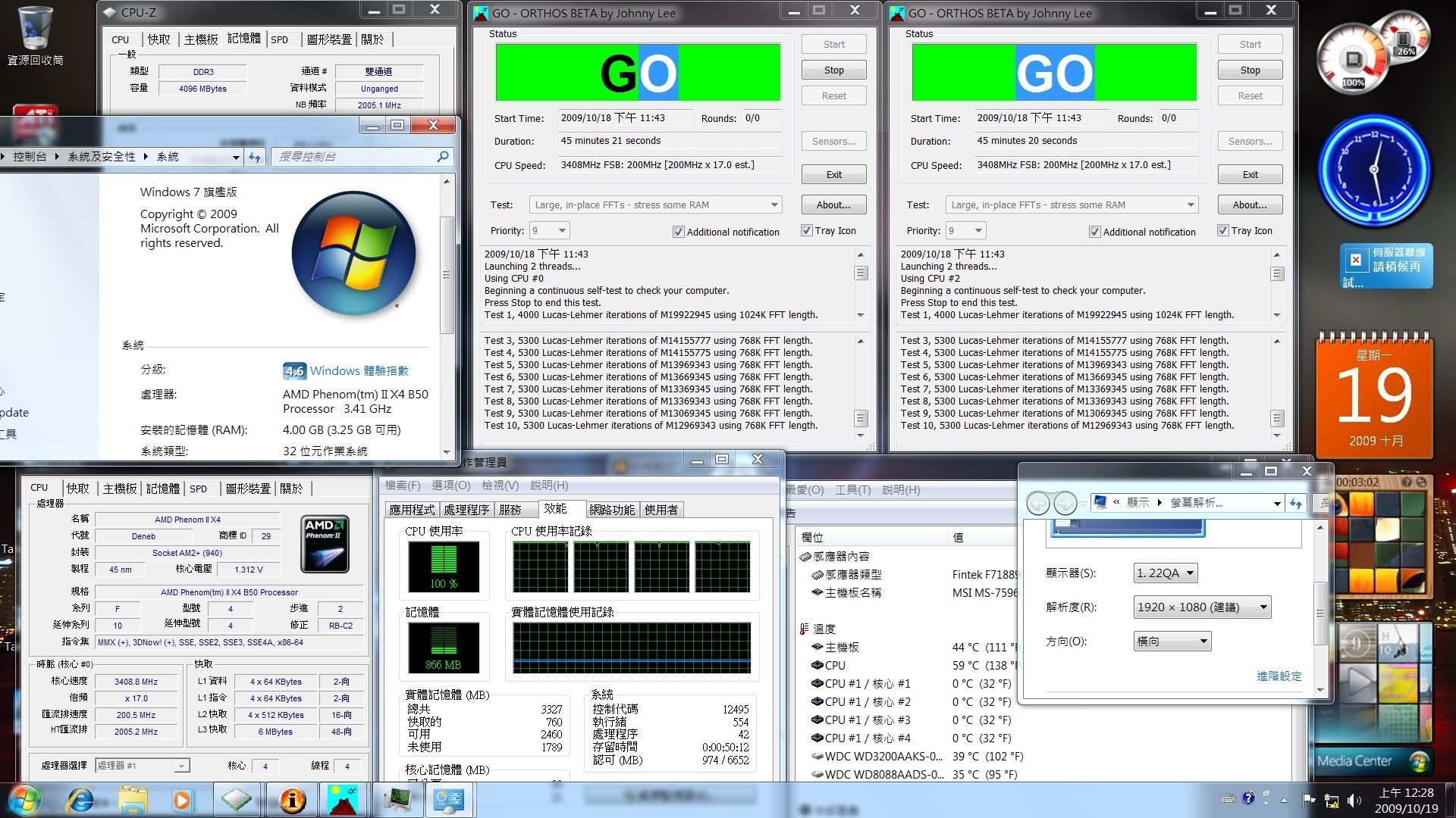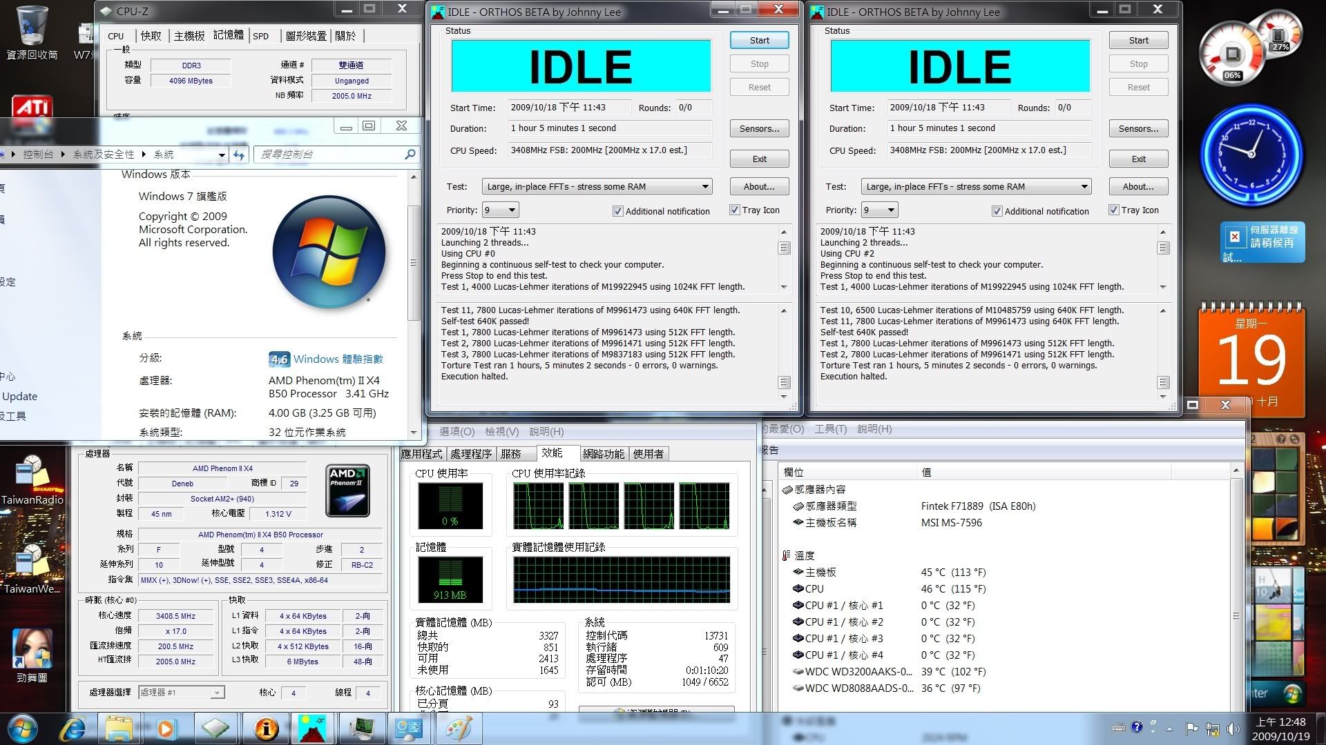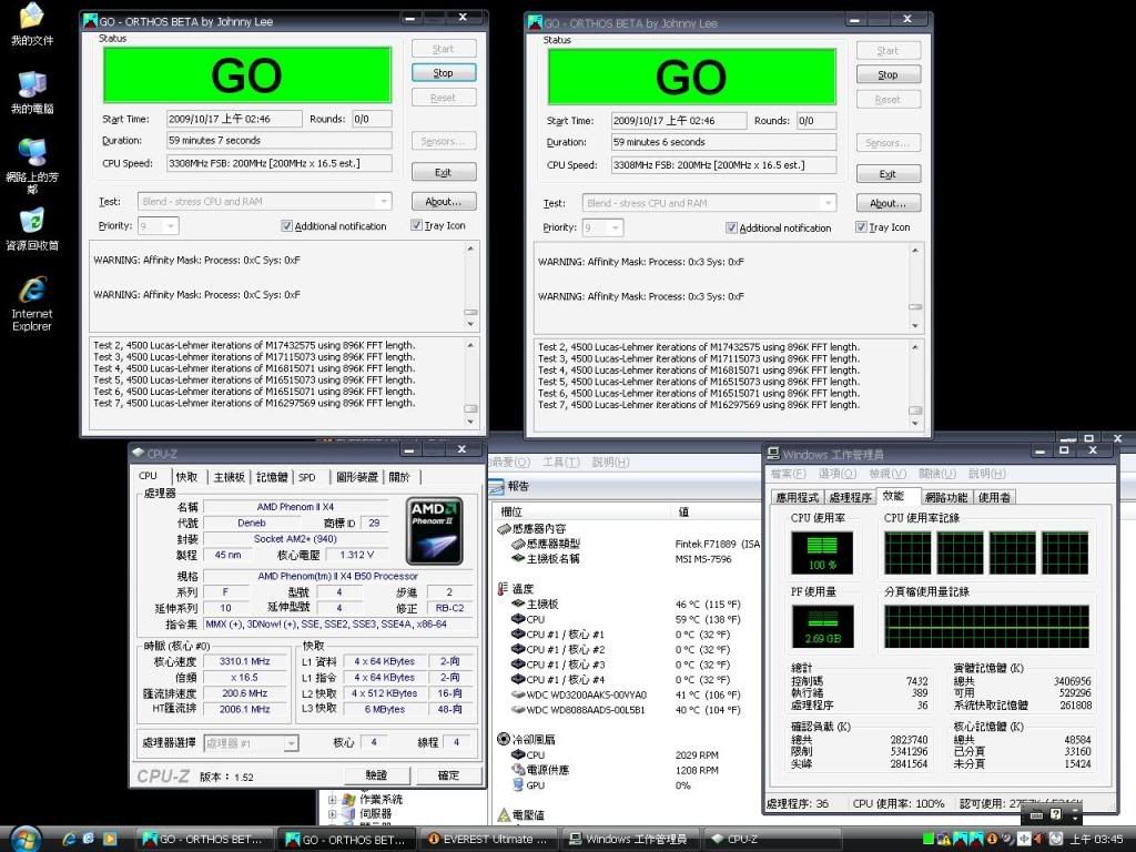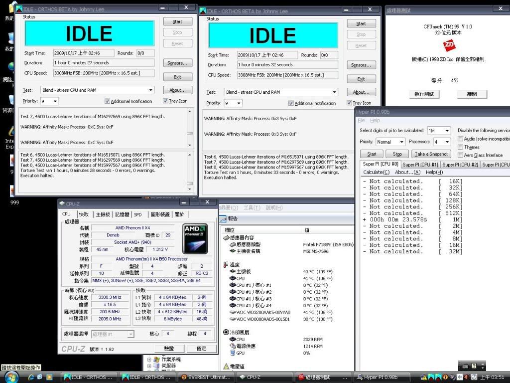 回家安裝好作業系統並安裝一些軟體 後 測試開核後的燒機 試了幾個小時就試超頻(新手超頻勿笑)