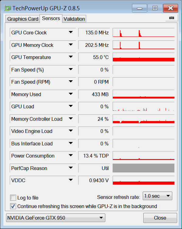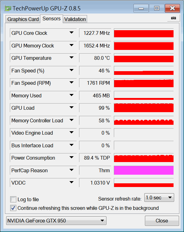 EVGA GTX950 SC ,短卡單風扇,,燒機數據.