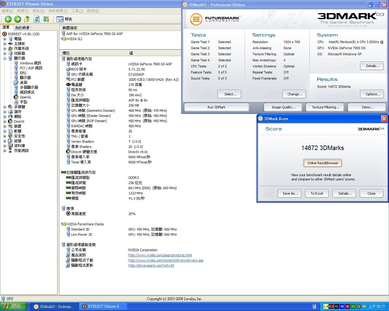 有部份人士應該沒有看過GeForce 7900GS AGP版本,在此我將它挖出來讓大家瞧瞧。 這張顯示卡的效能可能對於手頭上有PCI-Express介面的7、8、9系列顯示卡來講也許沒什麼,不過若單純的以P4 478 AGP 8X來說,能跑出此效能應該也算挺強的!