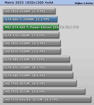 wus3412 wrote:明明就有遊戲測試跟開...(恕刪) 我說了 你只拿BF3來看怎不貼METRO 2033NO AA > 660TI OC >78704AA >660tI < 7850,,自己看吧 而且測試只到1920*1200 4AA OC版還小輸7870 NO OC版解析度再上去 只會輸更多 很多都只測到4AA而已