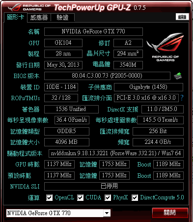 如題, 請教01的神人們, 有人遇過這情形嗎?我的顯卡是技嘉GTX770, 主板是ASUS H87 Pro安裝完Driver後, 打開GPU-Z來看, 顯卡只能跑x4這是GPU-Z的問題, 還是顯卡或主板其中之一有問題?我有試過換上之前用的HD6950後, GPU-Z是顯示正常的2.0 x16@x16 2.0換顯卡就是為了玩AC4, 要真的有問題而沒去換, 那就失去一換卡意義了麻煩大家幫幫我啊 謝謝