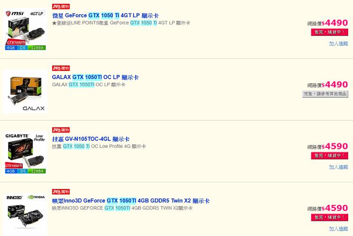 Extra,董 wrote:小弟朋友剛好要一起吃...(恕刪) 1050TI 4G 比較好一點 1050-2G 太少預算內只有一張能選https://www.isunfar.com.tw/product/?prodseq=202B38#/bcNo=16&ept=58剩下品牌都要5K以上