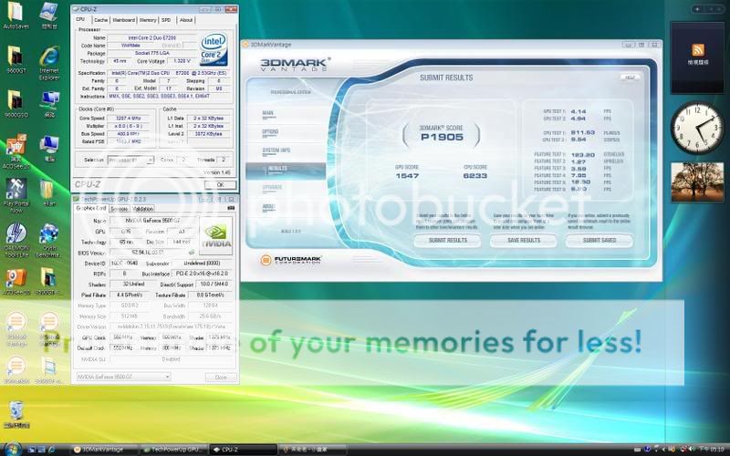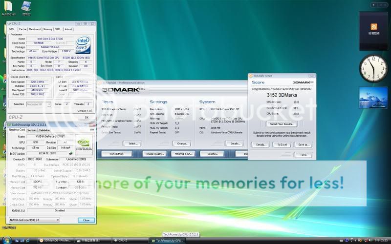 接著到了實際效能部分的測試,由於小弟朋友的配備實在不算高(E1200+P31的板子),看看還是到我的平台上測吧,使用E7200超頻到3.2GHz當做測試用的處理器、P45的板子和4GB的記憶體
