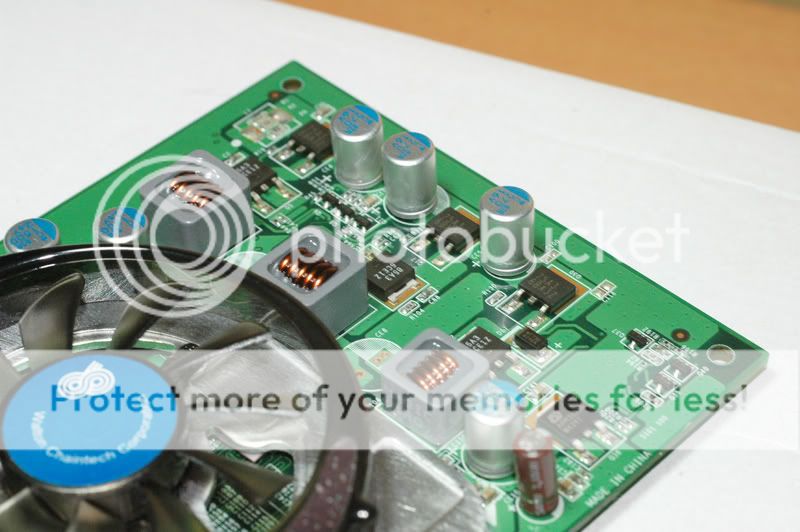 仔細瞧瞧細部吧,供電部份大部分都是使用固態電容,只有一顆不是….