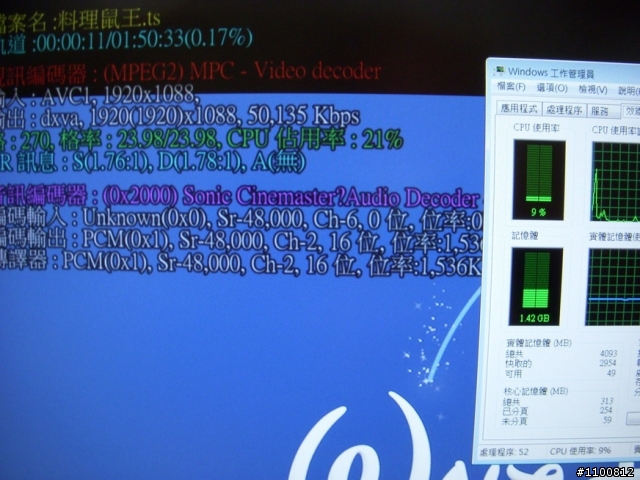 料理鼠王 ...硬解開啟了,但是CPU吃到24%,別忘了CPU是Q9550 沒OC