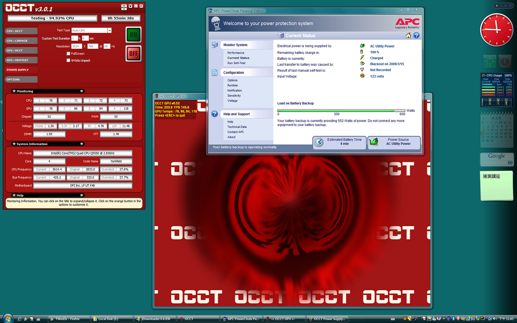 p020973 wrote:大大請問80PLUS...(恕刪) 你的想法是對的。是輸出到電腦425W,AC吃的是531.25W這樣AC轉到DC剛好80%...------------------------CPU小超一點,加上一張4870,燒一下機,這樣是超過550W的。扣掉一般使用不會用這麼誇張,那起碼也要500W足W的POWER!