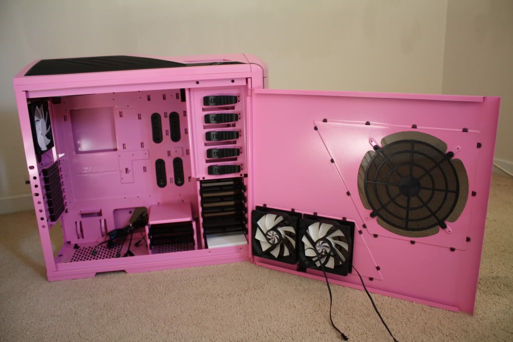 下方側版那兩個2x12公分風扇覺得有點多餘,因為前方已經有一個14cm在吸入了,側版又來好像只是徒增灰塵... 又因為左邊側版有風扇孔吸入所以他右邊側版也有開孔讓風出去,等於說如果你習慣把線都藏在背板的話(我以前到現在都這樣)你那一塊藏的線就會從他通風口被看到...