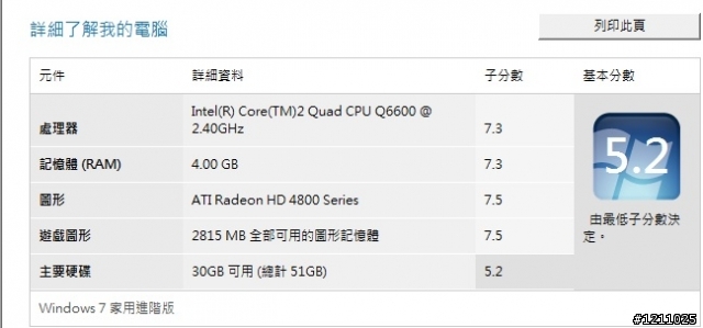 處理器 Intel(R) Celeron(R) CPU 2.40GHz記憶體 (RAM) 1.00 GB圖形遊戲圖形 未偵測到主要硬碟 44GB 可用 (總計 72GB)CPU操到3.6GHz, 偶而用IE上facebook玩遊戲會當掉