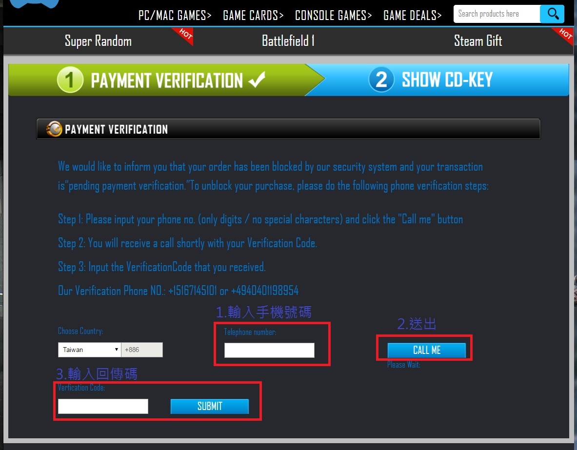 5.再來就是輸入手機號碼等待回傳碼收到並輸入