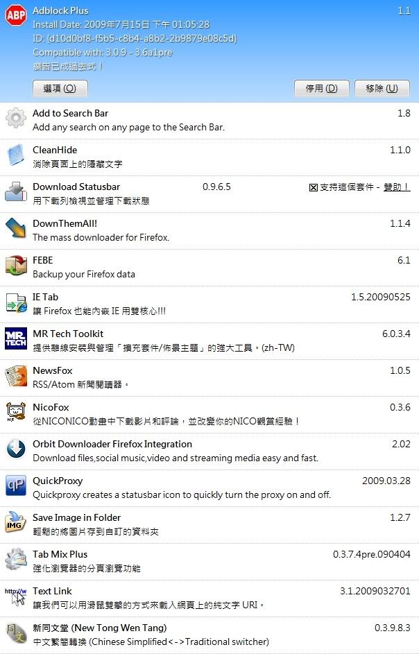 Cudacke Dees wrote:偶沒用很多外掛,總共...(恕刪) 昨天才更新3.5.1更新後才發現不支援許多外掛還好…有這篇方法能解法…感謝提供解決方法…目前發現3.5.1 版的小bug…跳出bt下載視窗時…會自動關閉游覽器希望有人能提供解決方法…(除了另開視窗連結之外的方法…)