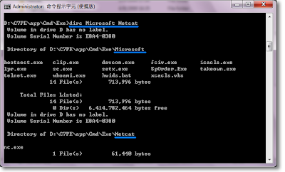 或者,以 DirC 輸出 Dir /w 風格 - "dirc microsoft netcat"