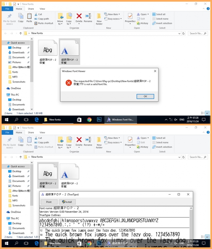 想請問舊版字型在win10安裝字型時出現[不是有效的字型檔],