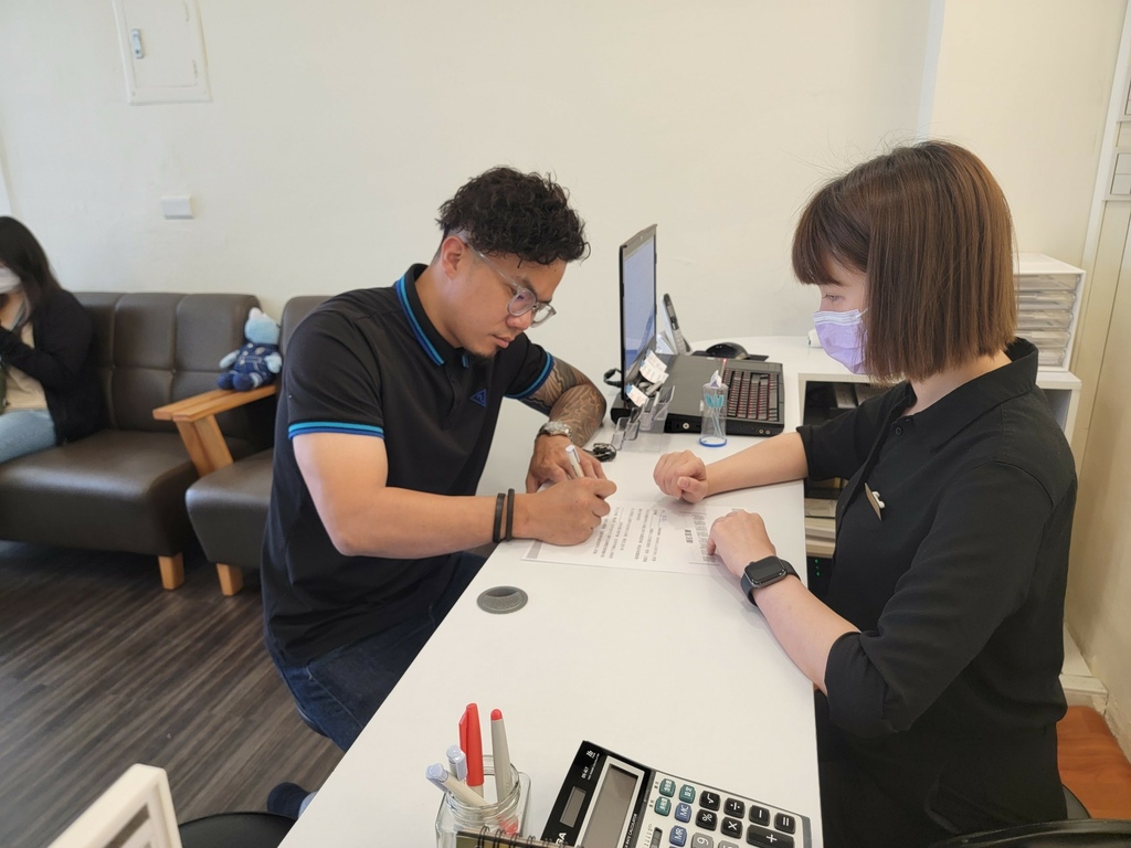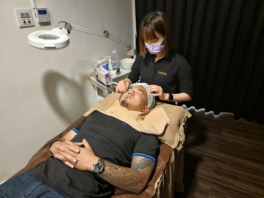 ▼平常都是我坐在諮詢櫃檯,先生說今天換他還真有點奇怪,不過美容師人很nice一點距離感都沒有,很流暢完成肌膚問題調查。