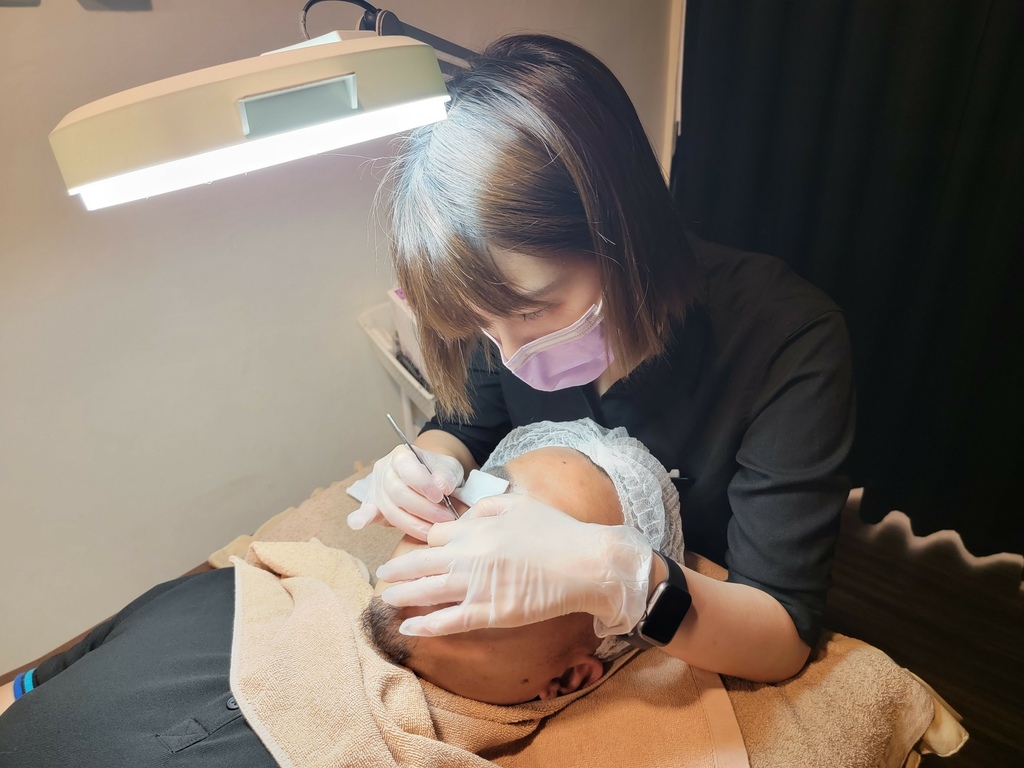 ▼美容師清粉刺手法溫柔,粉刺一顆一顆被清出來,毛孔暢通會呼吸(深呼氣~吐口氣~)