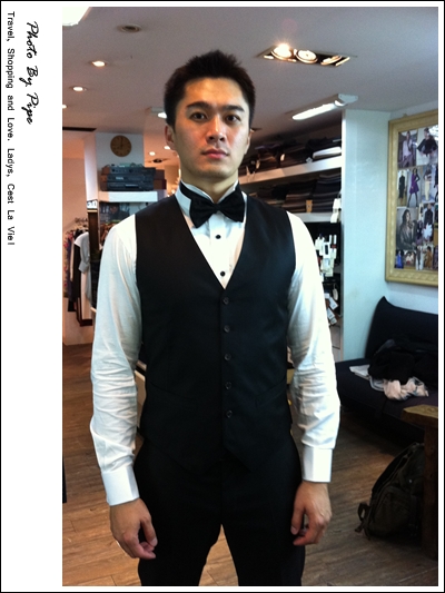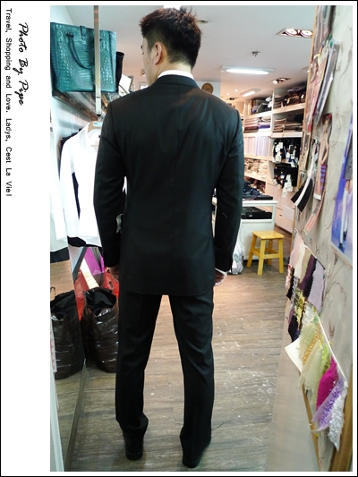 這套西裝算是新郎第一套正式的西裝,所以我們選擇最正式不會出錯的顏色黑色,將來拍婚紗照跟婚宴當天都會穿到,另外也為了以後10年內(maybe?)可能用到的場合著想,所以這次會訂做一整套,包括外套、褲子、背心以及襯衫。
