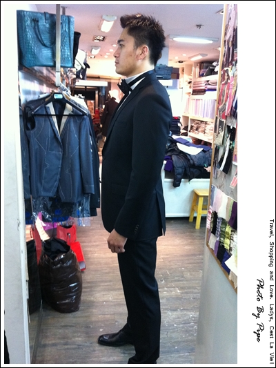 除了領子跟大小之外,也請老闆再把下擺修短原則上正式的西裝遮住臀部下方就好囉!太長會沒精神,太短會很「lady」!(題外話:師傅縫衣服動作超快!所以我拍照一直拍糊掉),
